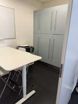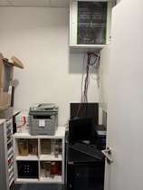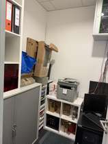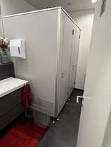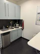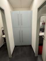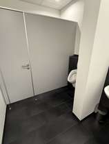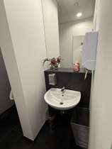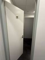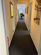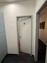 Die Räume haben einen weißen Anstrich, der dem Objekt eine helle und einladende Atmosphäre verleiht. Die vakante Fläche ist mit einem Teppichboden in den Büroräumen/Flur, PVC in der Küche und Fliesen in den Toiletten ausgestattet. Die Sanitärräume befinden sich in einem gepflegten und zeitgemäßen Zustand. Es gibt zwei von einander getrennte Bereiche für Damen sowie für Herren. 2 Kabinen für die Damen mit einem großen Waschtisch und großem Spiegel und eine Kabine und ein Pissoir, Waschtisch etc. für Herren. Im Flurbereich sind Einbauschränke integriert, die zusätzlichen Stauraum bieten.